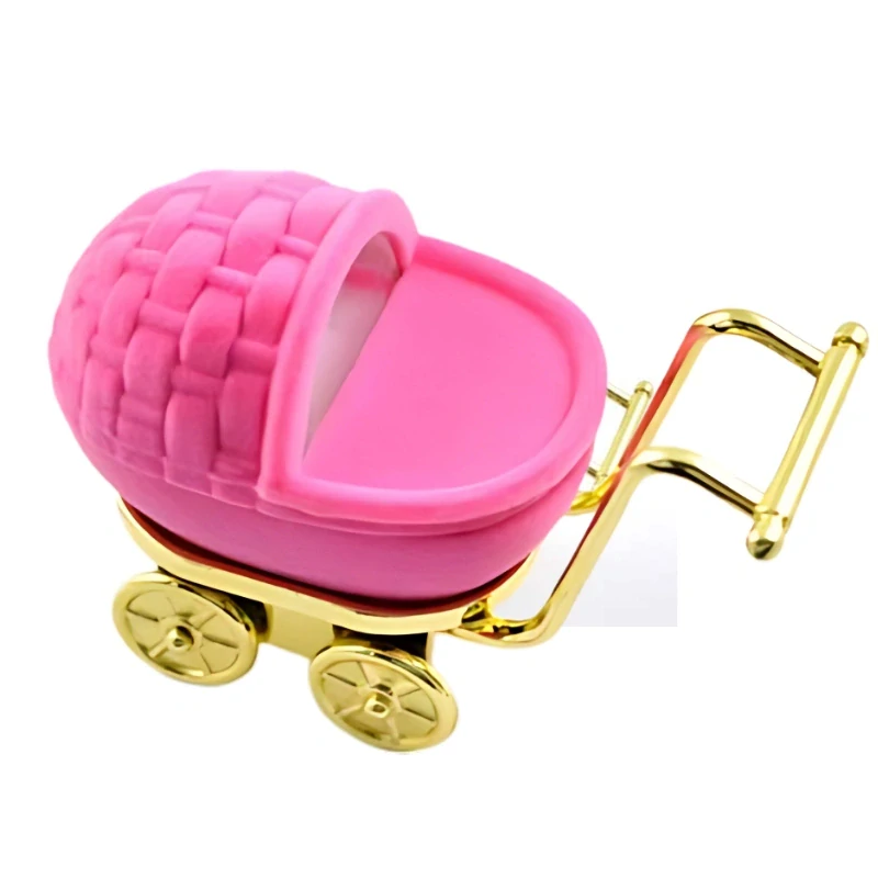 Krabička na šperky růžový kočárek sametový.