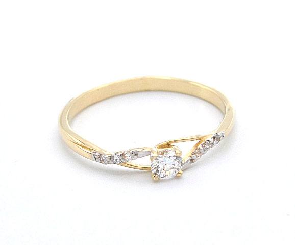 Dámský zlatý prsten se zirkony ze žlutého zlata vhodný jako zásnubní prsten.