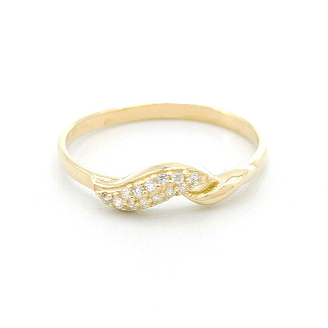 Zlatý prsten vlnka se zirkony kroužek ze žlutého zlata.