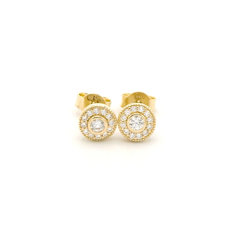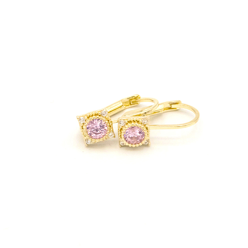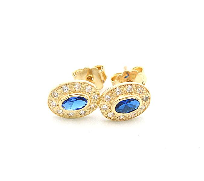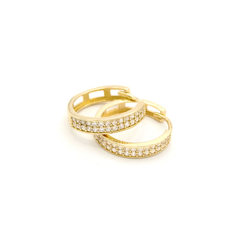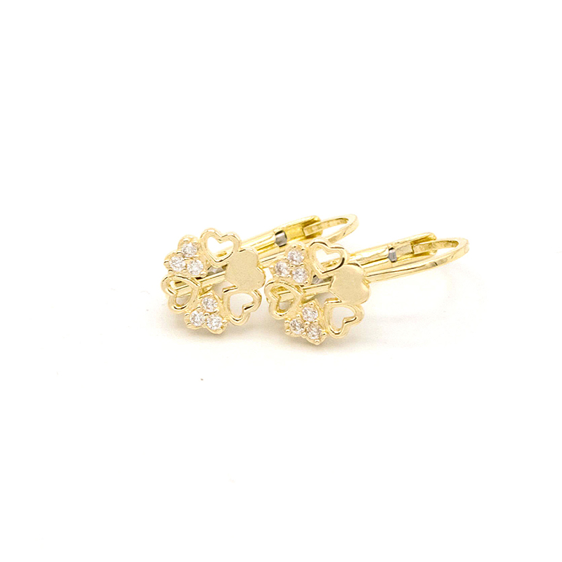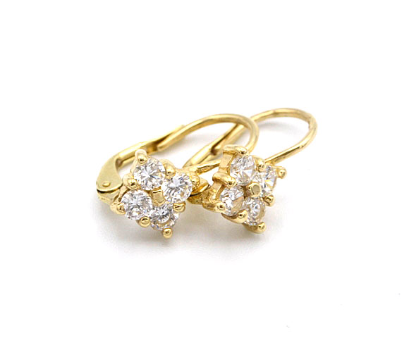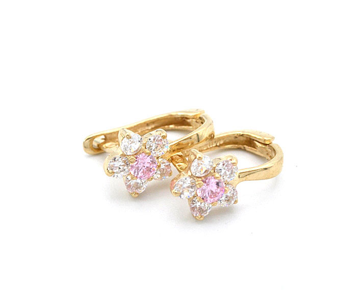 Dětské zlaté náušnice zdobené drobnými kamínky dodají šperku nádech luxusu.