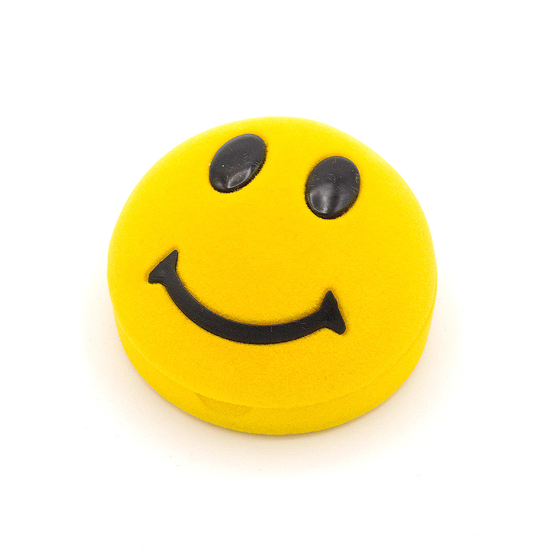 Krabička na šperky žlutý semišový smile kulatého tvaru.