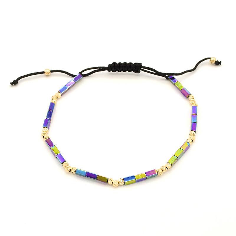 Tento náramek kombinuje moderní design s nádechem hravosti. Černý provázek kontrastuje se zlatými kuličkami, které jsou doplněny barevnými akcenty, jež dodávají náramku svěží a mladistvý vzhled. Ideální pro každodenní nošení nebo jako výrazný doplněk k ležérnímu outfitu.