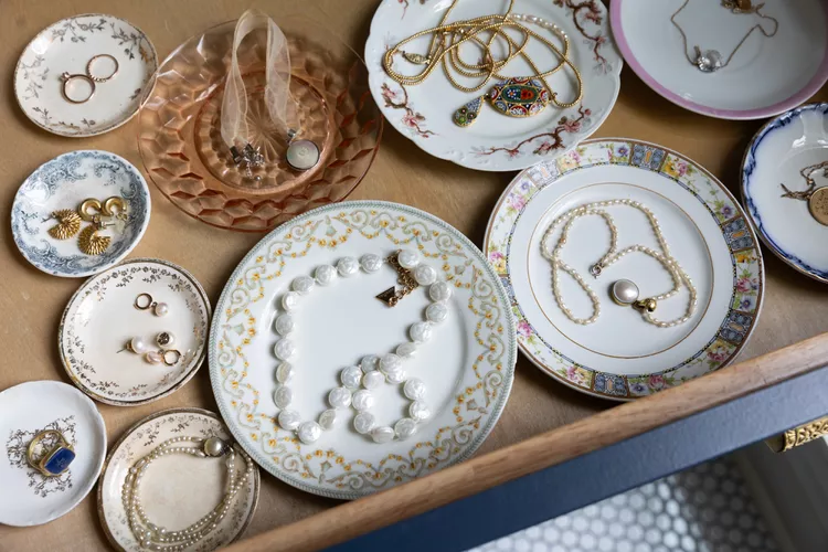Vaše klenoty se dají naaranžovat ve skleněných dózách, na dekorativních tácech, kolem pokojových rostlin a vedle stolních zrcadel. Doplnit je můžete knihou, fotografií, hodinkami nebo parfémem.