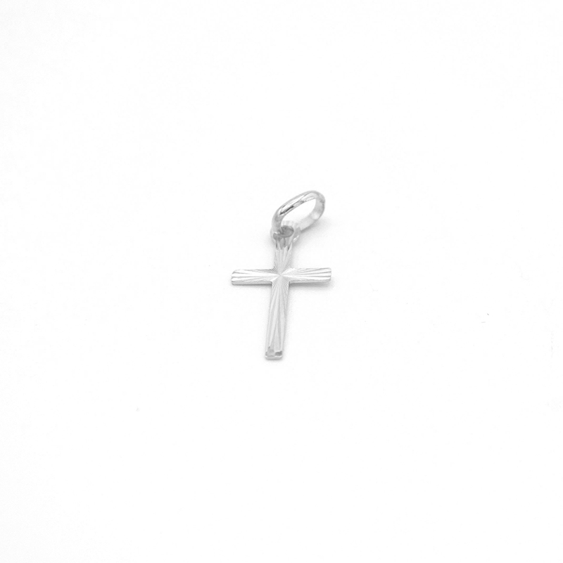 Přívěsek křížek z bílého zlata zdobený proužky 0,25g