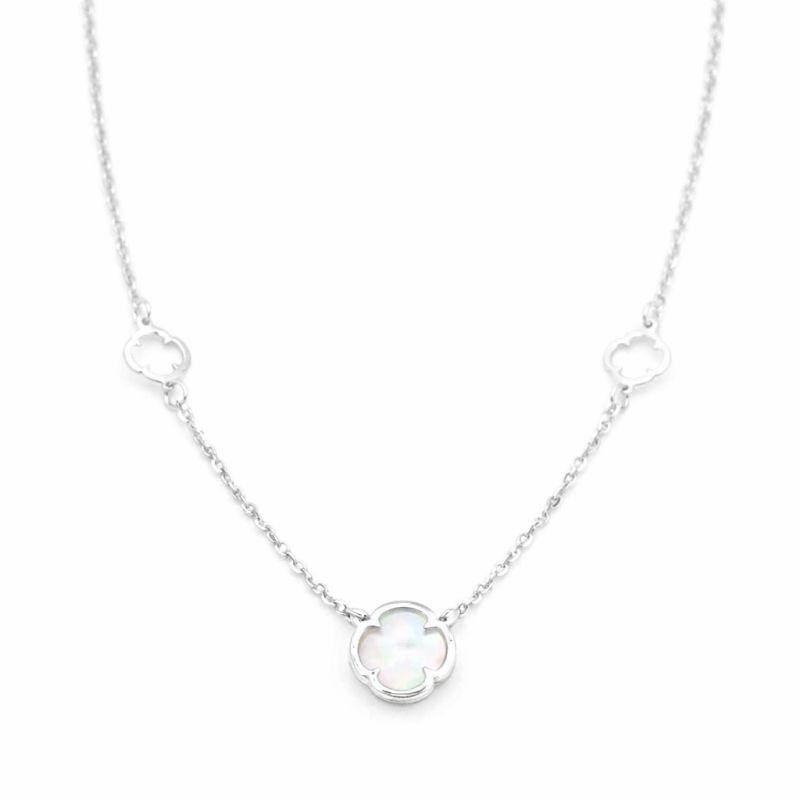 Dámský řetízek se čtyřlístky s perletí z bílého zlata s kvalitním zapínáním na větší karabinu v lesklém vzhledu.