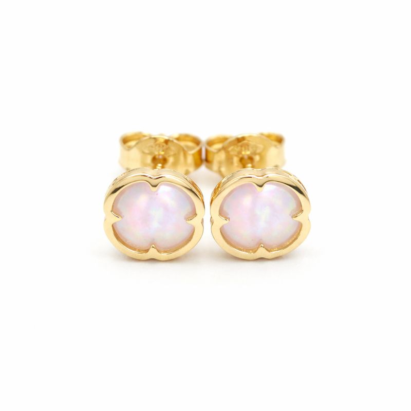 Zlaté dámské náušnice čtyřlístky s perletí ze žlutého zlata se zapínáním na puzetu.