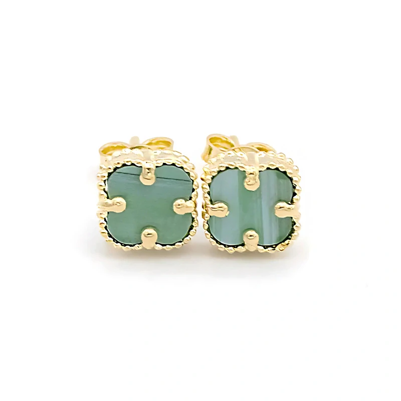 Zlaté náušnice čtyřlístky se zeleným kamenem na puzetu 1,35g