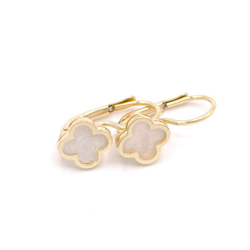 Zlaté náušnice čtyřlístky zdobené perletí 1,80g