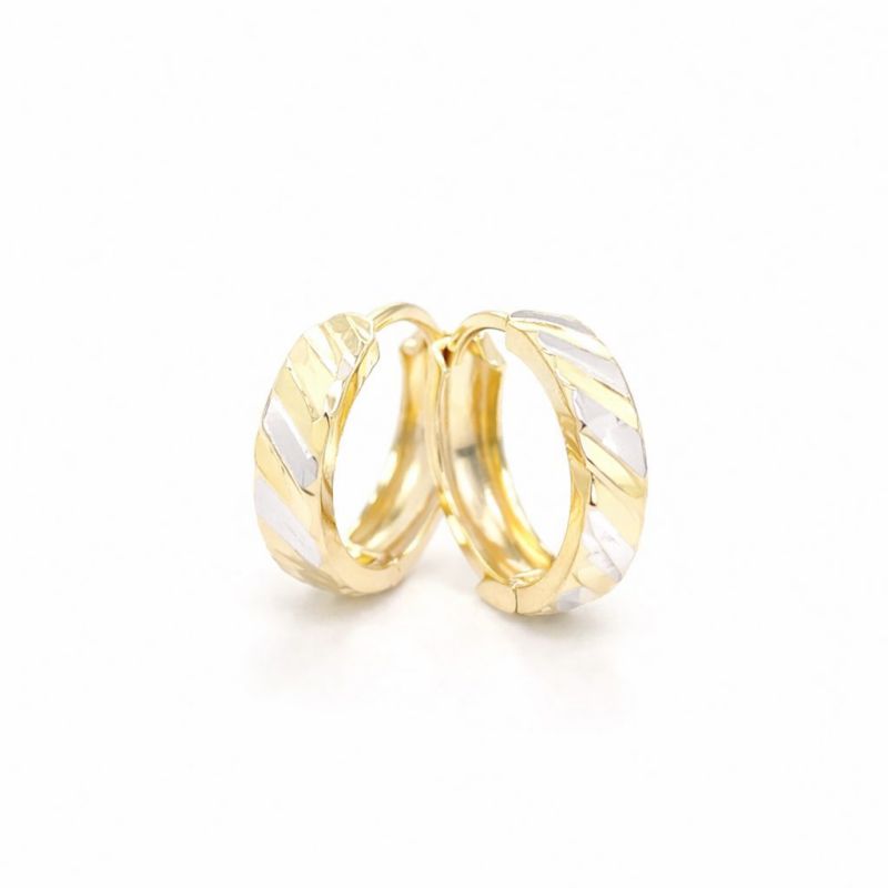 Zlaté dámské i dětské kruhové náušnice s proužky ze žlutého a bílého zlata se zapínáním na kreole.
