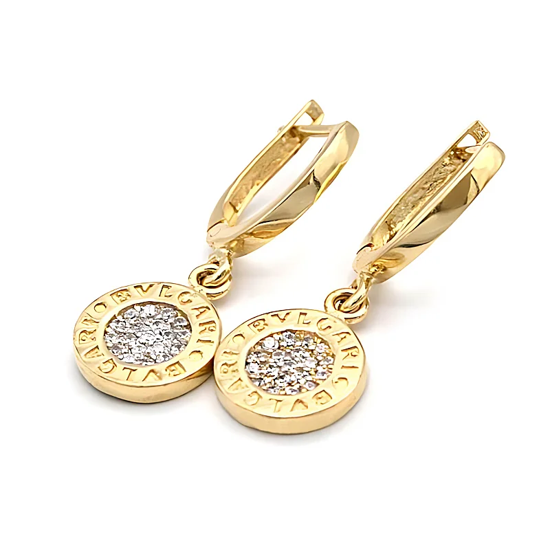 Zlaté náušnice kulaté se zirkony a nápisy 3,25g