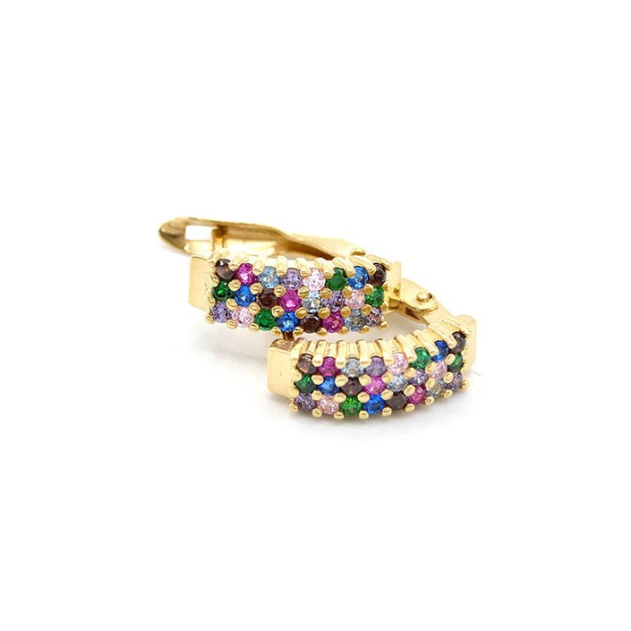 Dámské zlaté náušnice s barevnými kamínky ze žlutého zlata s francouzským zapínáním.
