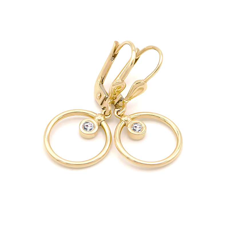 Zlaté náušnice visací kruhy se zirkonem 2,07g