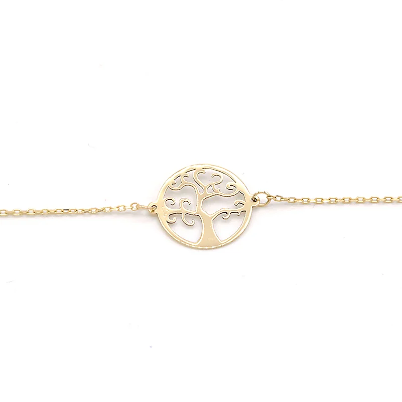 Dámský zlatý náramek s přívěskem strom života ze žlutého zlata se zapínáním na pérový kroužek.