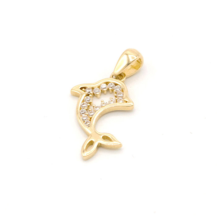 Zlatý přívěsek delfín se zirkony 1,00g