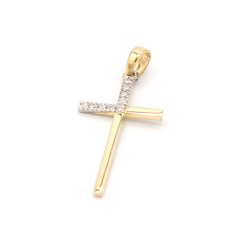 Dámský zlatý přívěsek kříž se zirkony ze žlutého zlata.