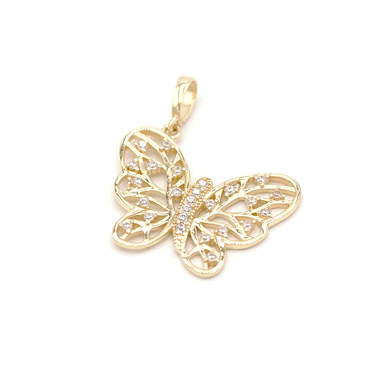 Zlatý dámský přívěsek motýl zdobený zirkony ze žluté zlata.