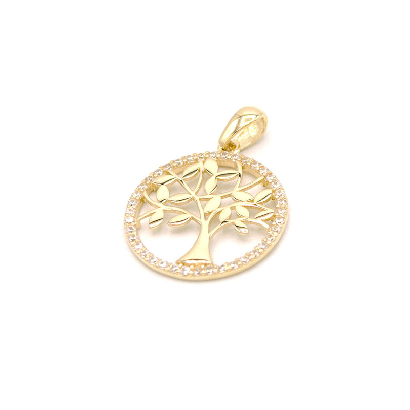 Dámský zlatý přívěsek strom života kulatý se zirkony ze žlutého zlata.