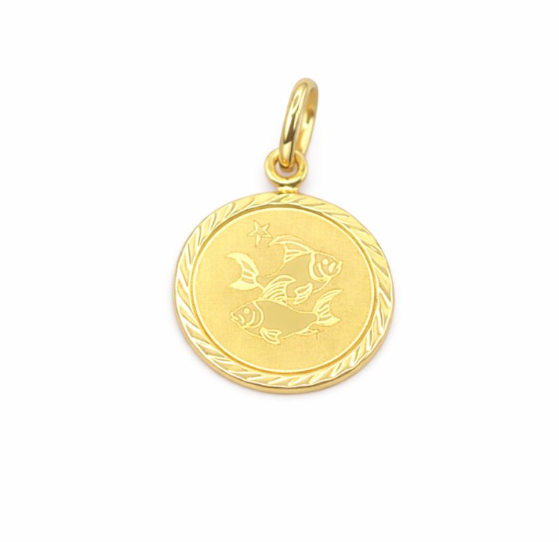 Stylový přívěsek ve znamení zvěrokruhu ryb kulatého tvaru s gravírovanými proužky po obvodu v lesklém vzhledu.