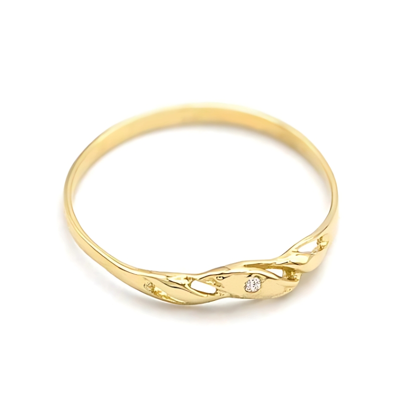 Nádherný prsten ze žlutého zlata vyniká jemnou vlnkovou ozdobou, do které je vsazen zářivý zirkon. Elegantní vzhled z něj dělá ideální volbu pro ženy všech věkových kategorií – ať už hledáte decentní doplněk pro každodenní nošení, nebo dárek pro mladou slečnu.