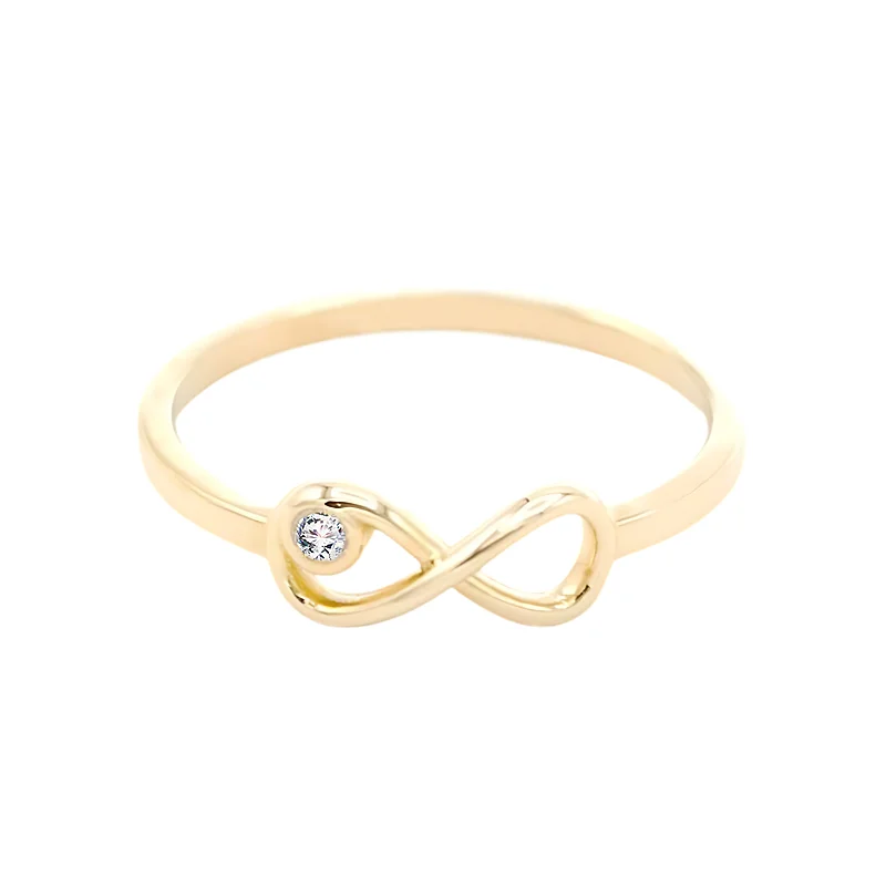 Dámský zlatý prsten nekonečno se zirkony ze žlutého zlata.