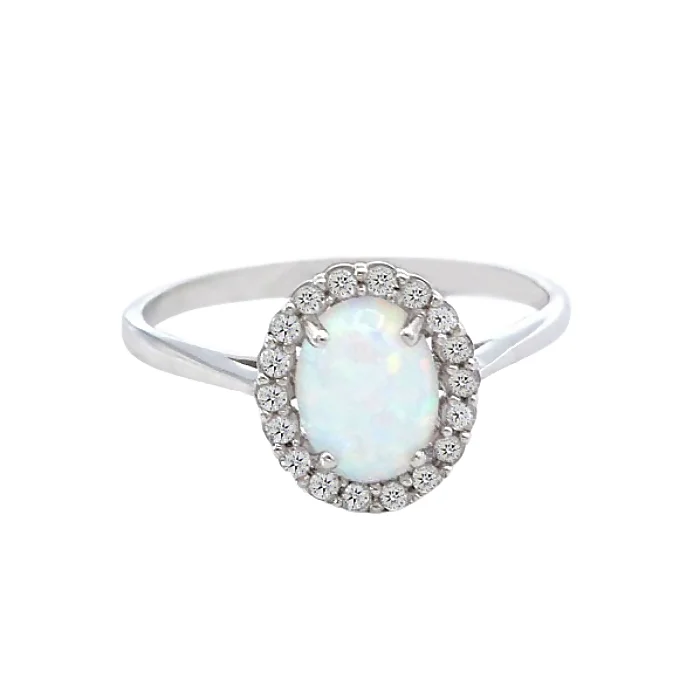 Prsten z bílého zlata, ovál s opálem a zirkony 3,25g