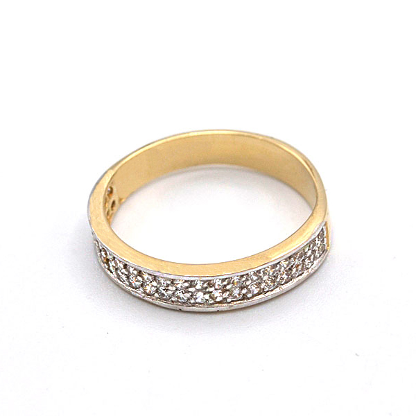Zlatý prsten s pruhy zirkonů dvě barvy zlata 2,35g