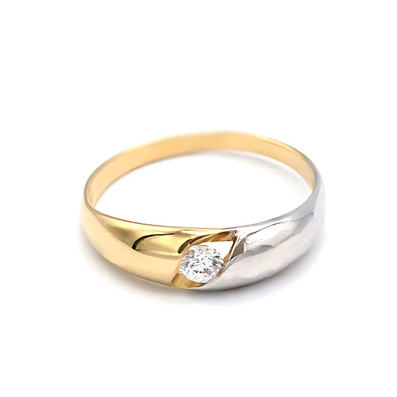 Zlatý prsten se zirkonem půlený dvě barvy zlata 1,23gSkladem4 577 Kč/ ks3 783 Kč bez DPH