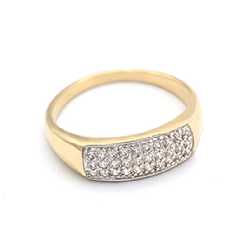 Zlatý dámský prsten s pásem zirkonů, žluté zlato.