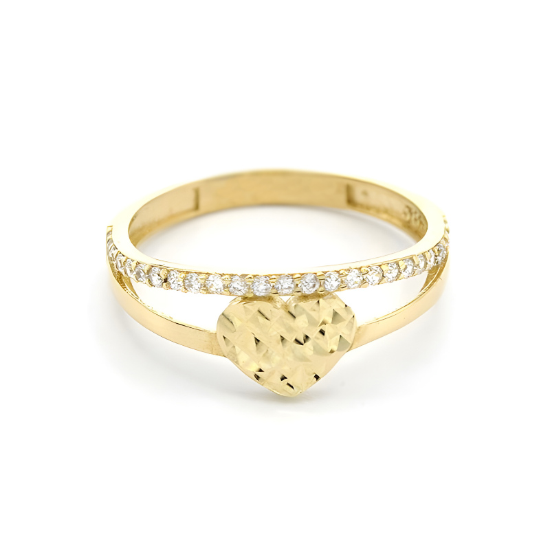 Zlatý prsten srdce a pruh zirkonů 1,55g