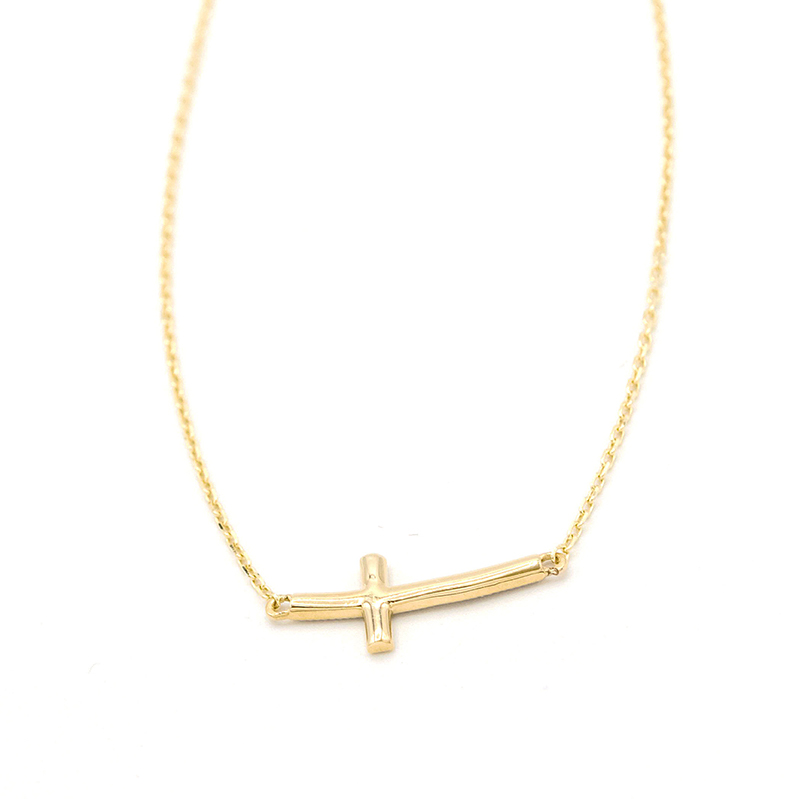 Elegantní řetízek žluté zlato s upevněným přívěskem křížkem ve středové části řetízku typu Anker.