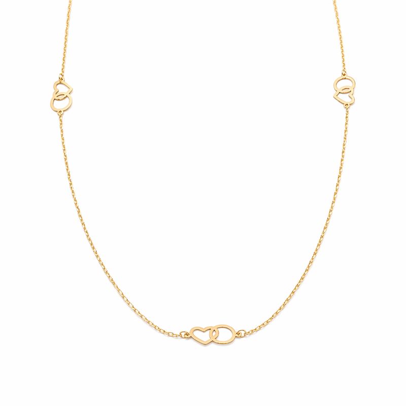 Jemný a elegantní zlatý řetízek s nastavitelnou délkou 42–45 cm je ideální volbou pro každodenní nošení i jako smysluplný dárek. Řetízek je doplněn o minimalistické přívěsky ve tvaru srdce a kolečka po celé délce řetízku, které jsou vkusně propojené a symbolizují lásku, harmonii a spojení.