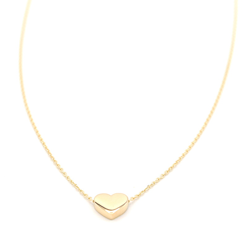 Dámský zlatý řetízek ozdobený zavěšeným pohyblivým hladkým srdíčkem ze žlutého zlata se zapínáním na pérový kroužek.