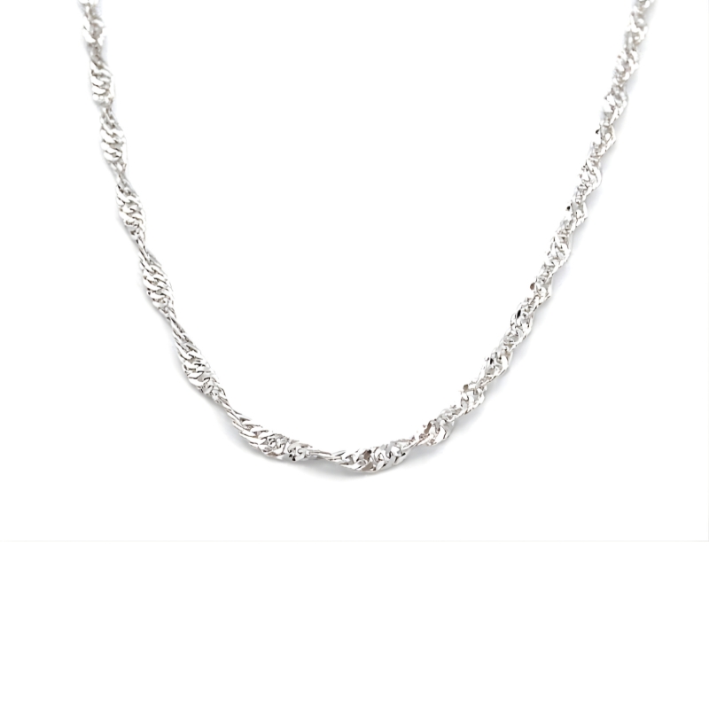 Jemný a elegantní dámský řetízek typu Singapore z bílého zlata zaujme svým decentním kroucením, které krásně odráží světlo a dodává šperku jedinečný lesk. Díky své subtilnosti je ideální pro každodenní nošení i jako doplněk k přívěsku.