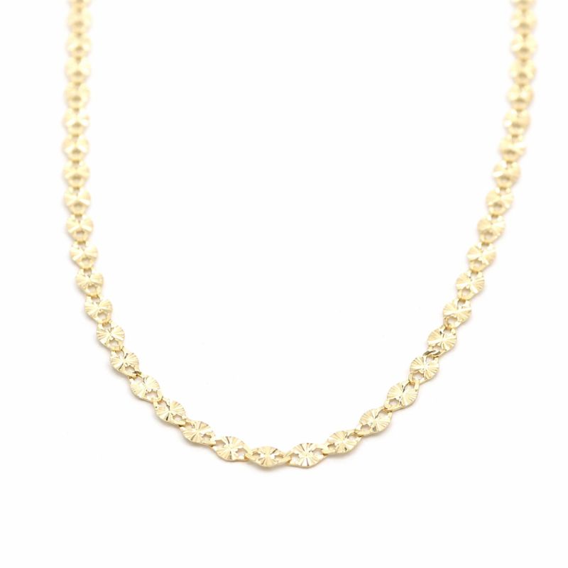 Dámský zlatý řetízek Valentina s plnými ploškami se zdobením ze žlutého zlata v lesklém vzhledu.