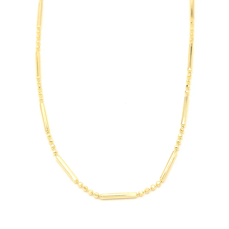 Elegantní náhrdelník žluté zlato lankovitý řetízek zdobený lesklými kuličkami a válečky pravidelně se střídající po celém obvodu.