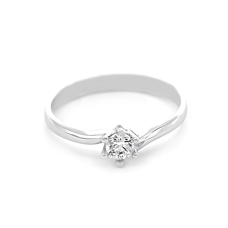 Elegantní zásnubní prsten z bílého zlata zdobený třpytivým kulatým zirkonem, který je bezpečně uchycený v klasickém osazení se šesti krapnami. Tento nadčasový design podtrhuje jemnou krásu prstenu a dodává mu šmrnc i sofistikovanost. Perfektní volba pro zásnuby nebo jako dárek z lásky, který potěší každou ženu.